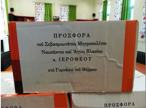 O Διευθυντής και ο Σύλλογος εκπαιδευτικών του Γυμνασίου Θέρμου εκφράζουν δημόσια τις ευχαριστίες τους προς τον Σεβασμιώτατο Μητροπολίτη Ναυπάκτου και Αγίου Βλασίου κκ Ιερόθεο, για την δωρεά του προς το σχολείο.