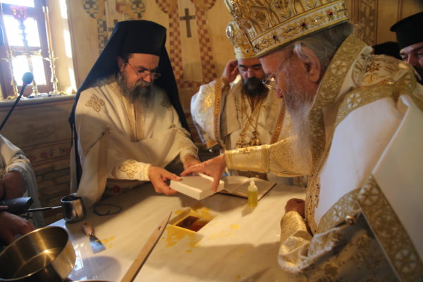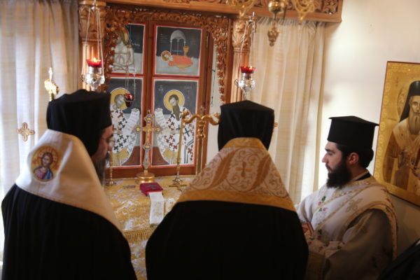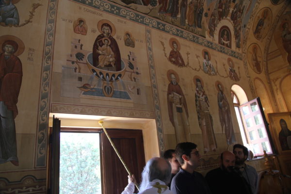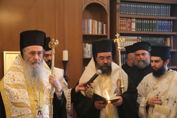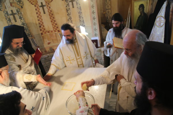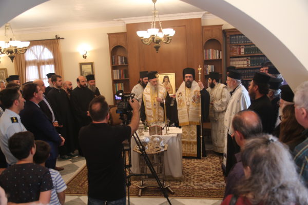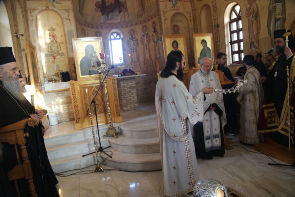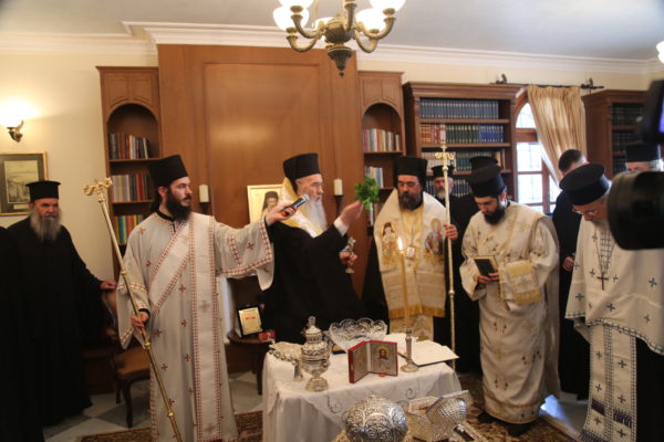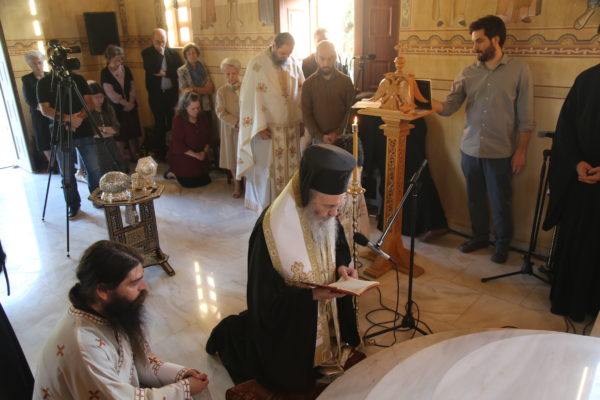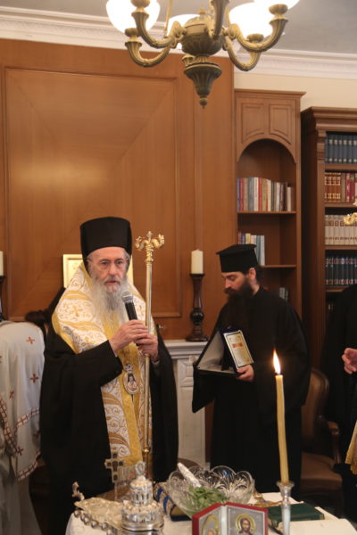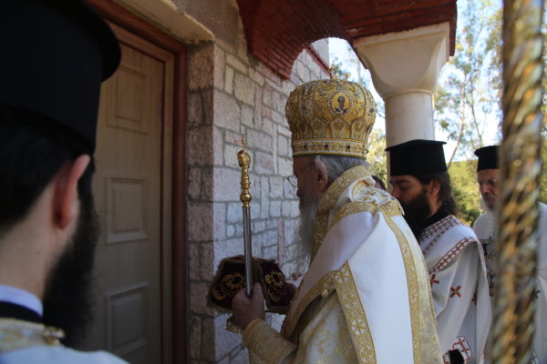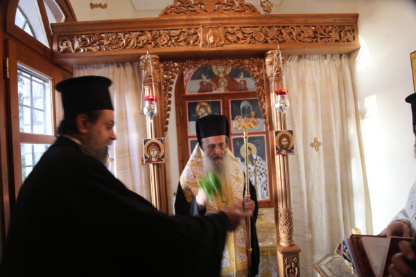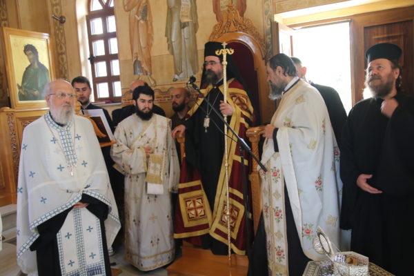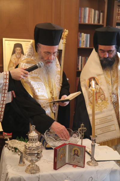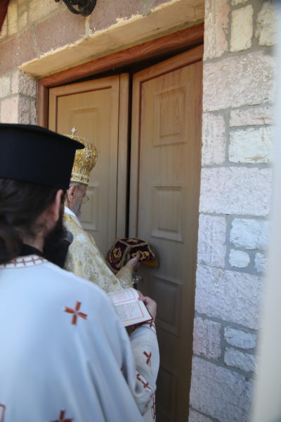 Στην συνέχεια ο Σεβασμιώτατος αναφέρθηκε στην αρχική ευχή των εγκαινίων του Πατριάρχου Κωνσταντινουπόλεως Καλλίστου, όπου παρακαλούμε τον Θεό για τον εγκαινιασμό του Ναού, αλλά και για τα προσωπικά μας εγκαίνια με την δύναμη και Χάρη του Αγίου Πνεύματος. Με το άγιο Πνεύμα εγκαινιάζεται ο Ιερός Ναός, ώστε να τελείται το Μυστήριο της θείας Ευχαριστίας και δι’ αυτού το Άγιον Πνεύμα να εγκαινιάζει και τον εσωτερικό ναό «διά της καθάρσεως του νοός» για να προσφέρει αέναες δεήσεις στον Θεό.