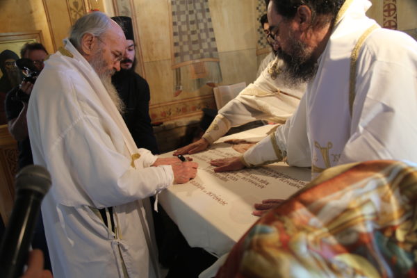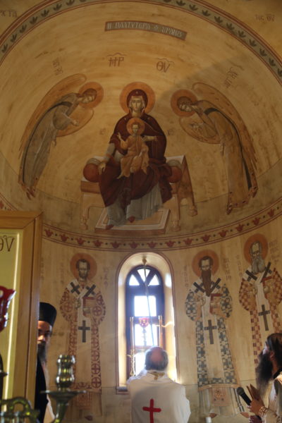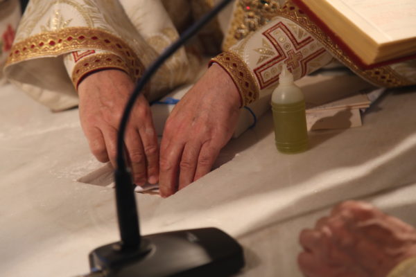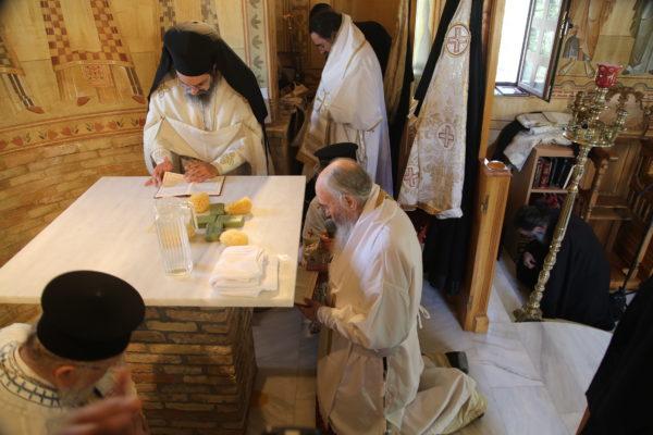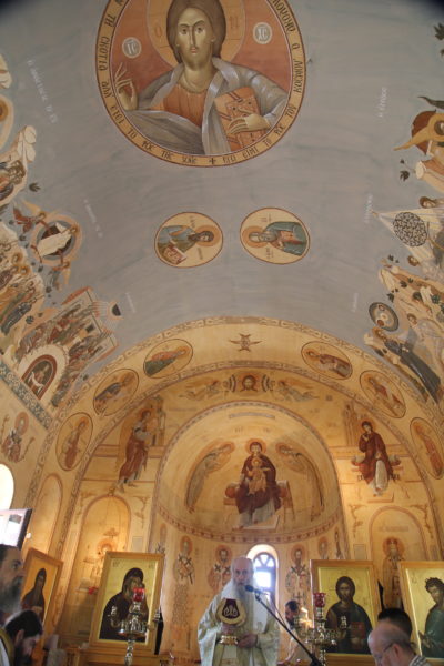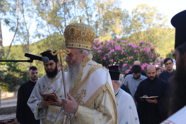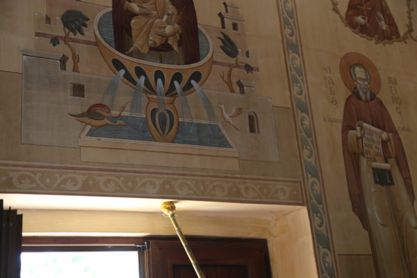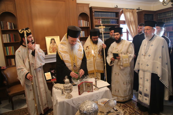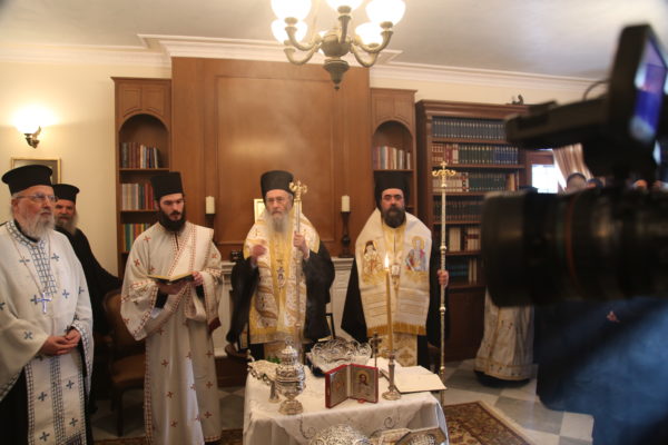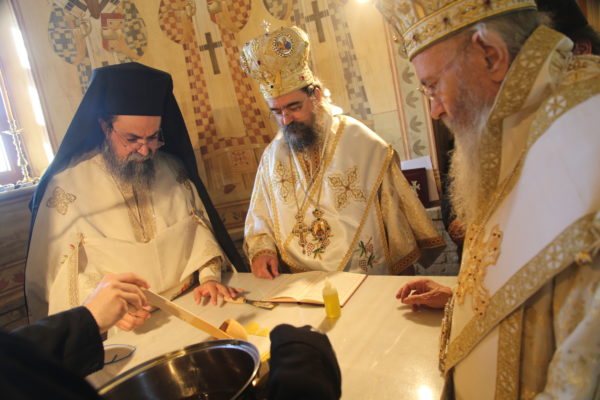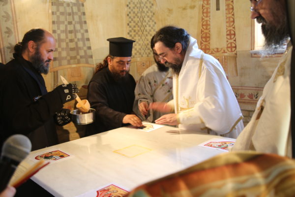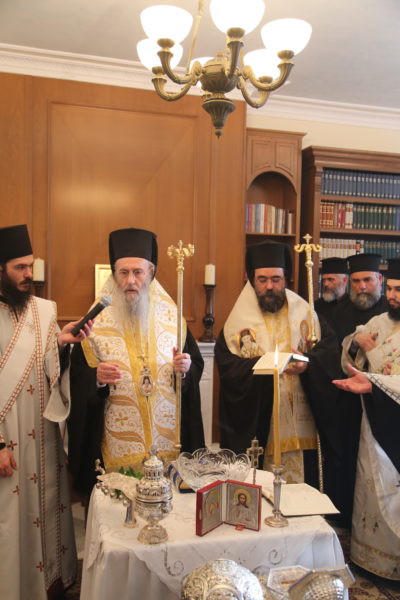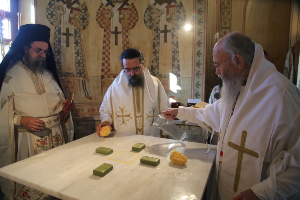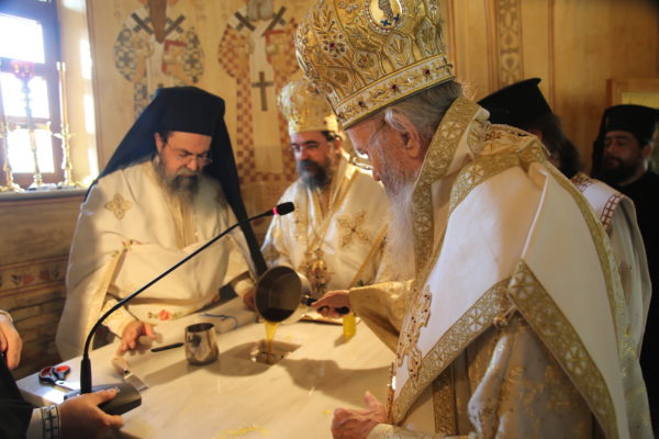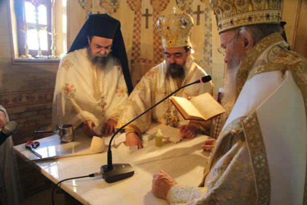 Στην συνέχεια ο Σεβασμιώτατος αναφέρθηκε στην αρχική ευχή των εγκαινίων του Πατριάρχου Κωνσταντινουπόλεως Καλλίστου, όπου παρακαλούμε τον Θεό για τον εγκαινιασμό του Ναού, αλλά και για τα προσωπικά μας εγκαίνια με την δύναμη και Χάρη του Αγίου Πνεύματος. Με το άγιο Πνεύμα εγκαινιάζεται ο Ιερός Ναός, ώστε να τελείται το Μυστήριο της θείας Ευχαριστίας και δι’ αυτού το Άγιον Πνεύμα να εγκαινιάζει και τον εσωτερικό ναό «διά της καθάρσεως του νοός» για να προσφέρει αέναες δεήσεις στον Θεό.