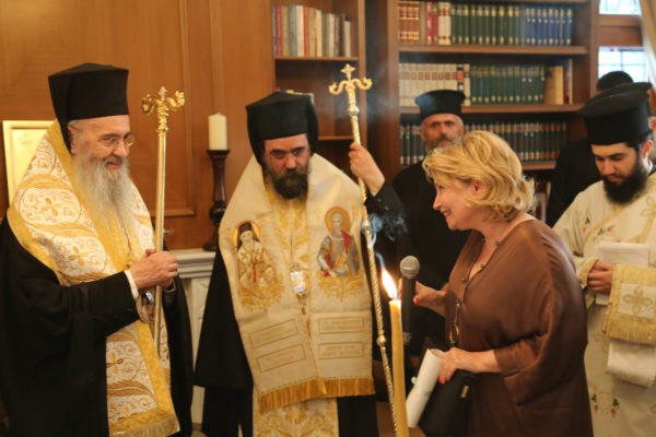 Επίσης, ευχαρίστησε την Μηχανικό κ. Παρασκευή (Βιβή) Λαγαρού-Θεοφάνη, η οποία ανέλαβε όλη την ευθύνη της ολοκλήρωσης του έργου και της νομιμοποίησής του, στην οποία έδωσε και τιμητική πλακέτα εκφράζοντας «τον δίκαιον έπαινον» της Ιεράς Μητροπόλεως.