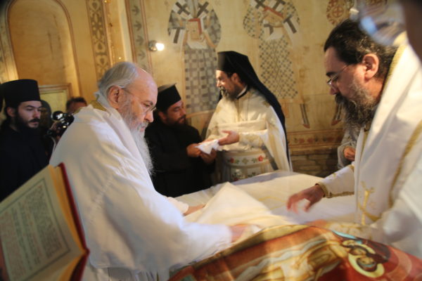Ετέθησαν σε προσκύνηση τμήμα ιερού λειψάνου του Οσίου Δαυίδ και τμήμα της αγίας Κάρας του αγίου Καλλινίκου Μητροπολίτου Εδέσσης.