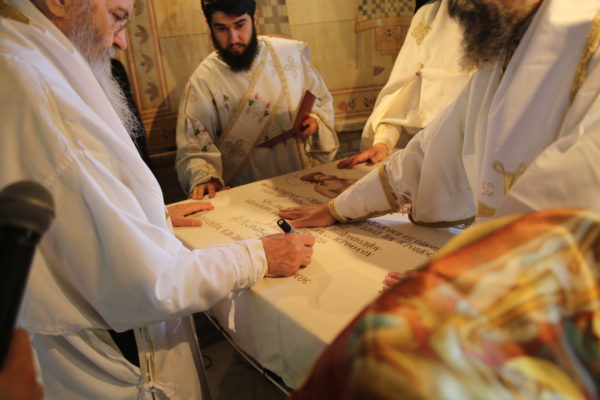 Ιδιαιτέρως στο κήρυγμά του μίλησε για τους τρεις άξονες της εκκλησιαστικής ζωής, όπως φαίνονται στην τελετή των εγκαινίων ενός Ιερού Ναού, ήτοι τον Επίσκοπο, τους Αγίους και το Θυσιαστήριο. Ο συνδυσμός αυτών εκφράζει το εκκλησιαστικό φρόνημα.