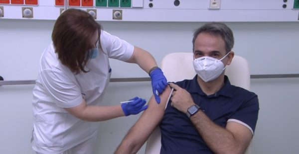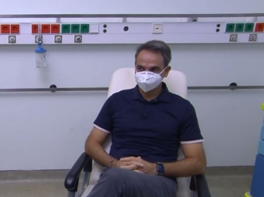 Aφού έλαβε το εμβόλιο, ο κ. Μητσοτάκης τόνισε πως «ήταν ανώδυνο», ενώ ευχήθηκε «καλή αρχή» στις νοσηλεύτριες.
