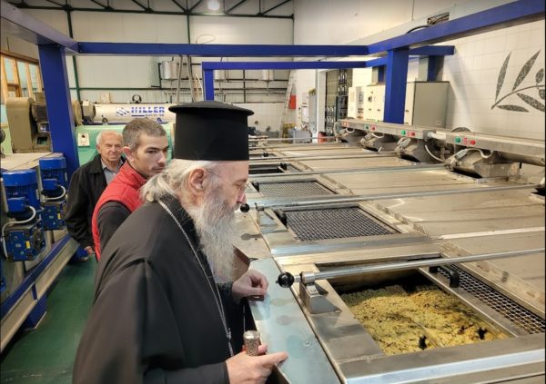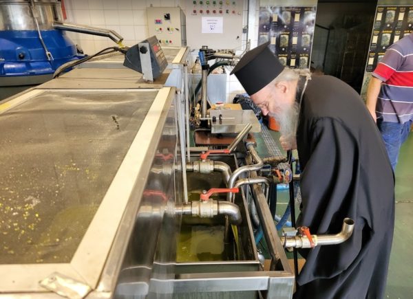 Κατόπιν ο Σεβασμιώτατος επισκέφθηκε το Ελαιοτριβείο του κ. Μίχου και ξεναγήθηκε στους χώρους του, ενημερώθηκε για την διαδικασία παρασκευής του ελαιολάδου και ευλόγησε την φετινή παραγωγή, τους ελαιοπαραγωγούς, τους εργαζομένους στο Ελαιοτριβείο και τους ιδιοκτήτες του. Κατά τον μήνα Νοέμβριο η συγκομιδή της ελιάς ρυθμίζει την ζωή των κατοίκων της Ναυπακτίας.
