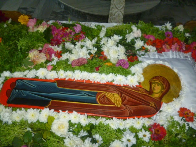 Ὁ Ἐσπερινός μέ τήν Παράκληση θά αρχίσουν στίς 7,00 τό ἀπόγευμα. Τά Ἐγκώμια θά ψαλλοῦν στίς 8.30 καί στίς 9 θά γίνη ἡ ἔξοδος τοῦ Ἐπιταφίου τῆς Παναγίας γιά μικρή περιφορά.