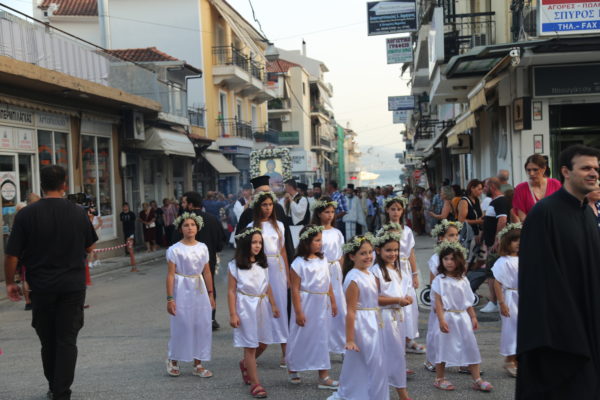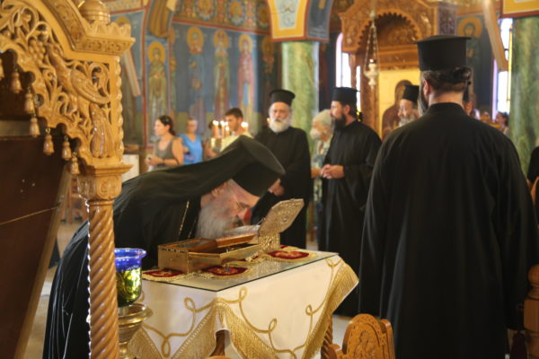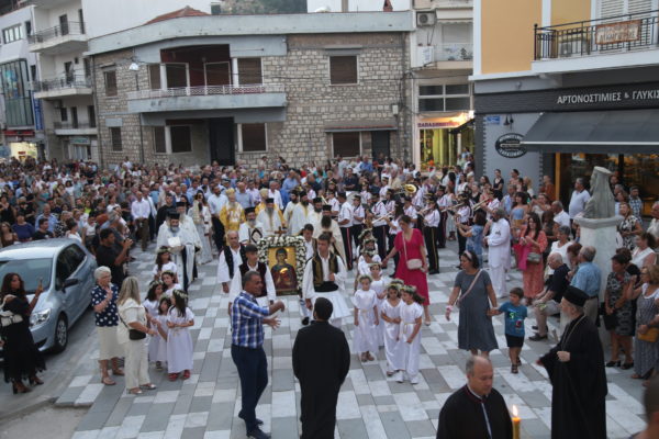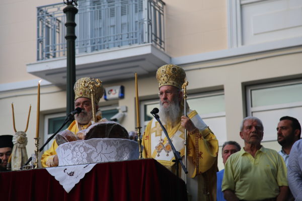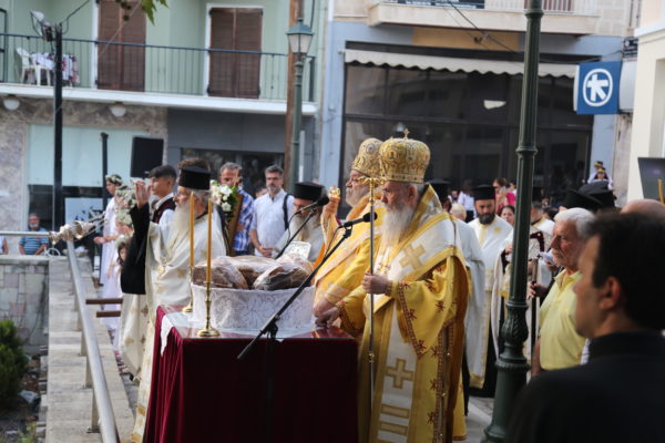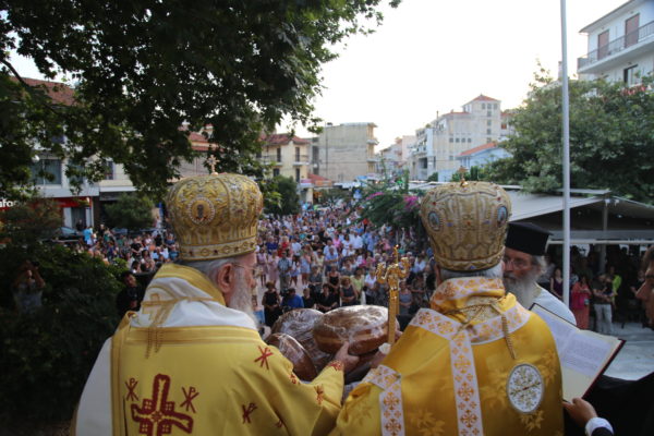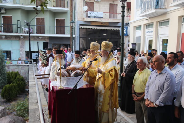Στο τέλος του Εσπερινού λιτανεύθηκε η ιερά εικόνα της Αγίας Παρασκευής. Στην κεντρική πλατεία της πόλεως, τελέσθηκε η Αρτοκλασία και ακολούθησε η ομιλία του Σεβασμιωτάτου Μητροπολίτου κ. Ιεροθέου.