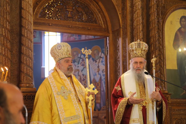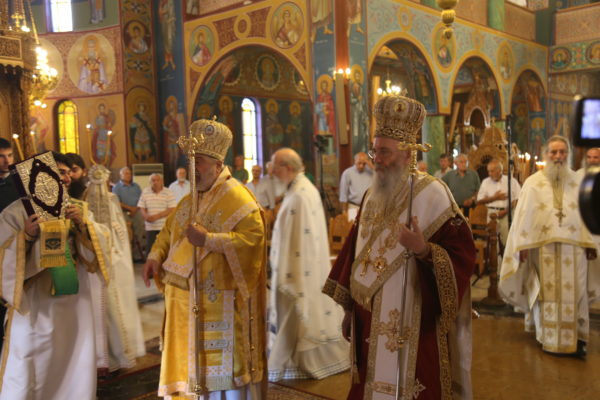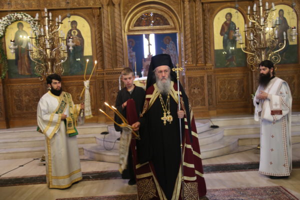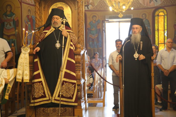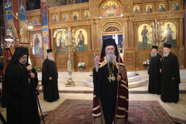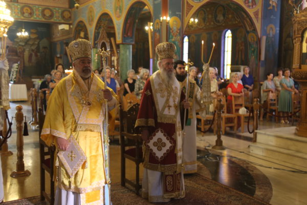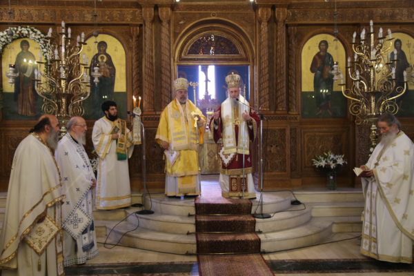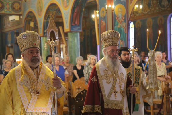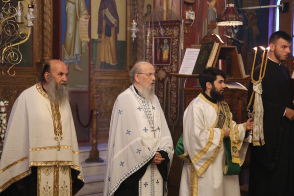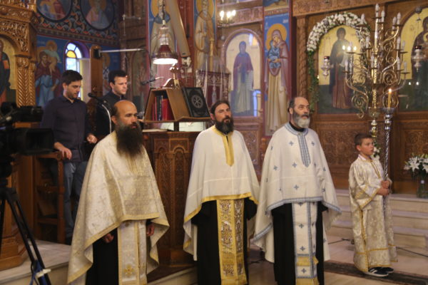 Τους δύο Αρχιερείς πλαισίωσαν, ο Γενικός Αρχιερατικός Επίτροπος της Ιεράς Μητροπόλεως π. Θωμάς Βαμβίνης, οι εφημέριοι της Ενορίας π. Θεμιστοκλής Τσιτσιρίκης και π. Γεώργιος Παπαβαρνάβας και οι Διάκονοι π. Παίσιος και π. Αντώνιος.