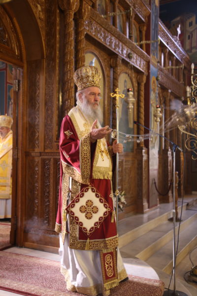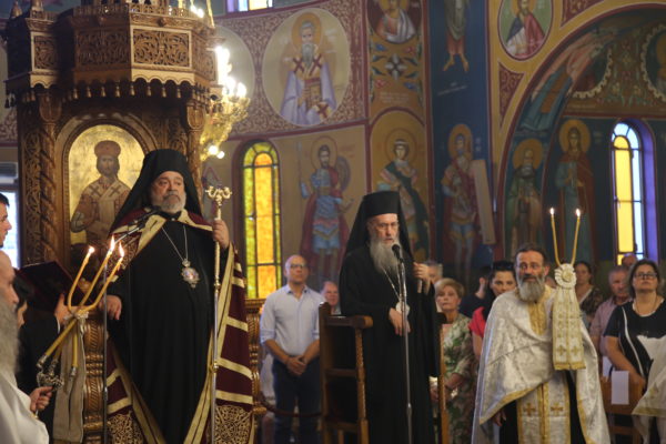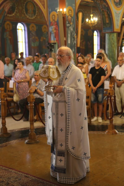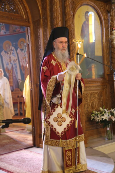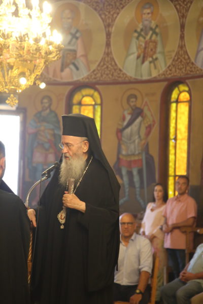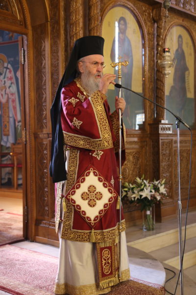 Πριν την απόλυση της Θείας Ευχαριστίας ο Μητροπολίτης κ. Ιερόθεος, ευχαρίστησε τον Μητροπολίτη Ιταλίας κ. Πολύκαρπο, που και εφέτος παρεβρέθηκε καιτίμησε με τους συμπατριώτες του και συνενορίτες του την εορτή της Αγίας Παρασκευής. Ο Ναός της Αγίας Παρασκευής, είπε ο Σεβασμιώτατος, βρίσκεται ανάμεσα από τους δύο Ιερούς Ναούς του Αγίου Δημητρίου και του Αγίου Γεωργίου, άρα και οι δύο Στρατηλάτες Άγιοι σέβονται και αγαπούιν την Αγία Παρασκευή. Απόδειξη ότι στην Εκκλησία σεβόμαστε τον κάθε άνθρωπο, άνδρα ή γυναίκα, αλλά με την εν Χριστώ ζωή υπερβαίνεται το Φύλο, κατά τον λόγο του Αποστόλου Παύλου «ουκ ένι άρσεν και θήλυ΄ πάντες γαρ υμείς εις εστε εν Χριστώ Ιησού». Όλοι είμαστε κατ᾽ εικόνα και καθ᾽ ομοίωση Θεού και όλοι, άνδρες και γυναίκες, μπορούμε να γίνουμε άγιοι.