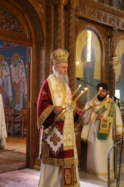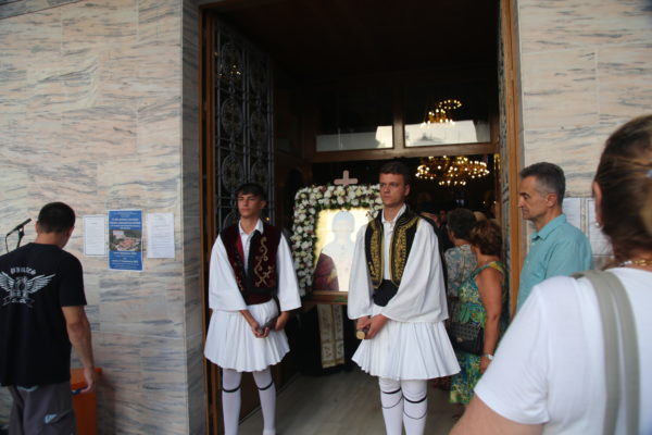 Την παραμονή τελέσθηκε μέγας Αρχιερατικός Εσπερινός, χοροστατούντος του Μητροπολίτου Ιταλίας κ. Πολυκάρπου, που αυτήν την περίοδο ευρίσκεται στην ιδιαίτερη πατρίδα του, την Ναύπακτο, συγχοροσταντούντος του οικείου Ποιμενάρχου Σεβασμιωτάτου Μητροπολίτου Ναυπάκτου και Αγίου Βλασίου κ. Ιεροθέου, με την συμμετοχή πλειάδος Ιερέων της Μητροπόλεώς. Εκκλησιάσθηκαν οι Αρχές του τόπου, ο Δήμαρχος, Αντιδήμαρχοι, Αρχηγοί Δημοτικών Παρατάξεων και Δημοτικοί Σύμβουλοι Ναυπακτίας, και πλήθος πιστών.