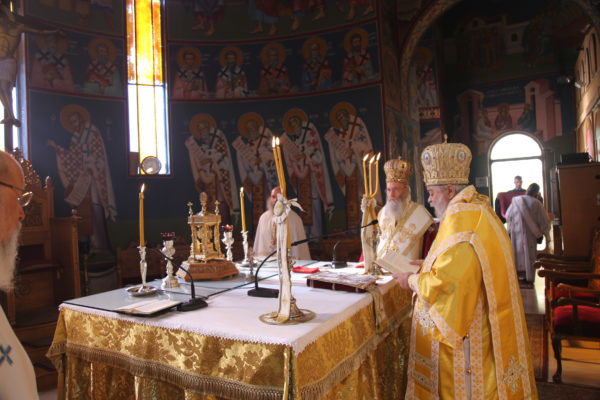 Το πρωί της κυριώνυμης ημέρας τελέσθηκε Αρχιερατικό Συλλείτουργο ιερουργούντος του Μητροπολίτου Ιταλίας κ. Πολυκάρπου και συλλειτουργούντος του Μητροπολίτου κ. Ιεροθέου.