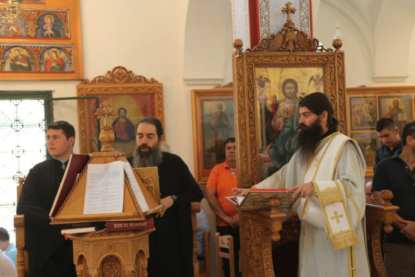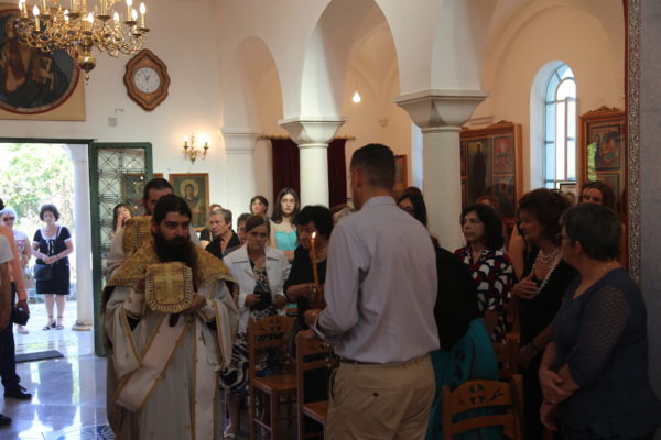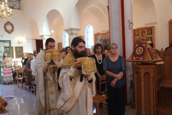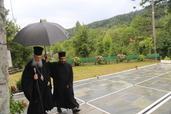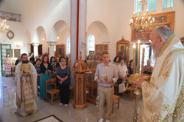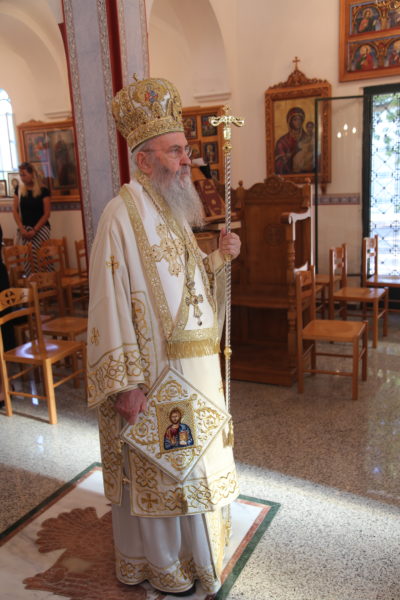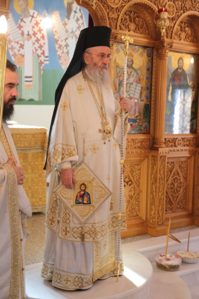 Τον Σεβασμιώτατο πλαισίωσαν ο Εφημέριος του χωριού, Αρχιμανδρίτης π. Ιωακείμ Σωτηρόπουλος και ο Διάκονος π. Παΐσιος, ενώ έψαλλαν ο π. Δαυίδ της Ιεράς Μονής Αγίου Αυγουστίνου Τρικόρφου με τον Σπύρο Ποριτσάνο, που κατάγεται από το χωριό.