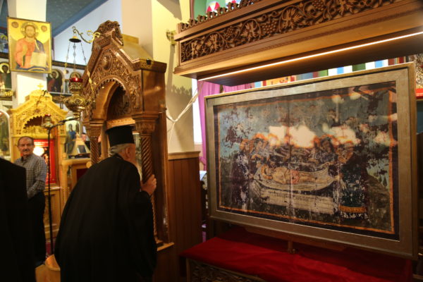 Στο τέλος της θείας Λειτουργίας ο Σεβασμιώτατος επήνεσε τον παρόντα κ. Κωνσταντίνο Αποστολόπουλο και την οικογένειά του, ο οποίος έκανε μεγάλους αγώνες για να κτιστή ο νέος περικαλλής Ναός του Αγίου Νικολάου με δική του προσωπική εργασία, αλλά και να διακοσμηθή με αγιογραφίες και ξυλόγλυπτα.