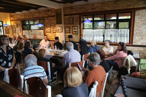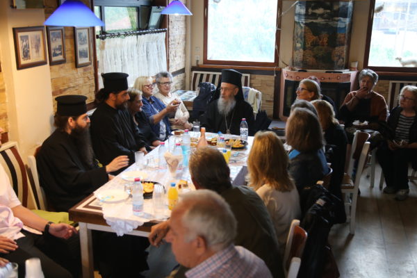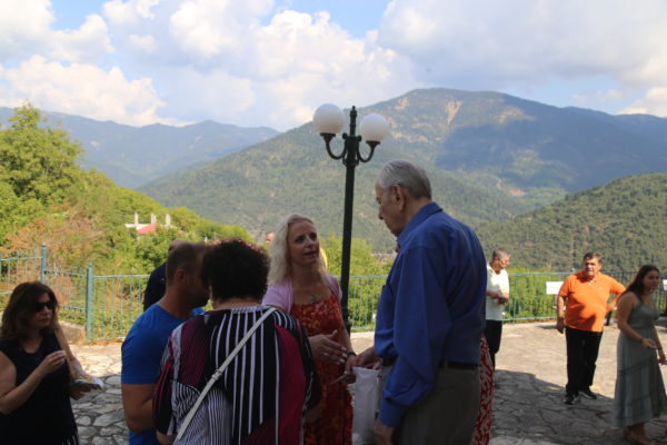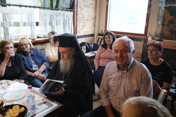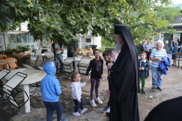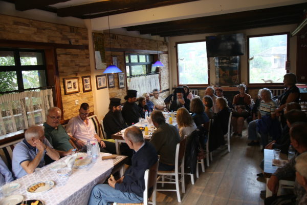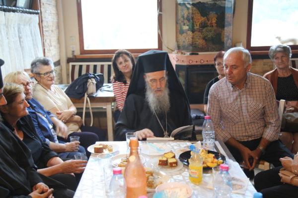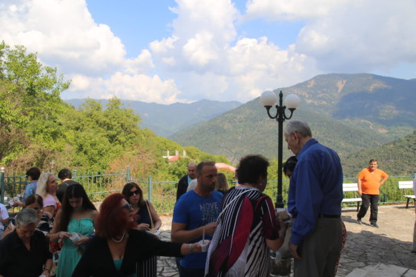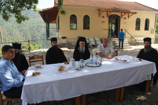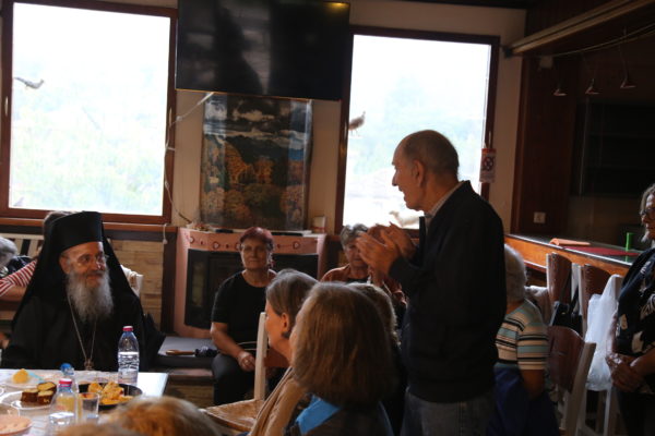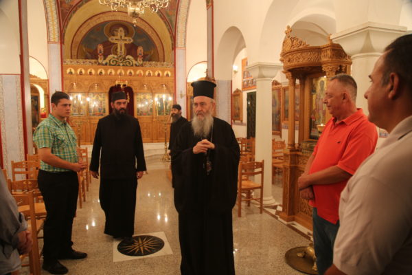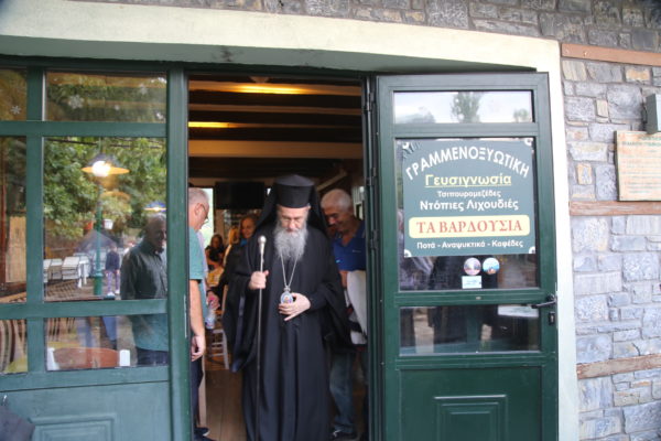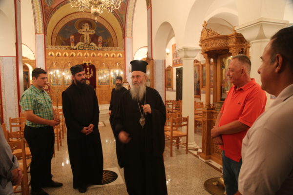Στην συνέχεια επισκέφθηκε την πλατεία του χωριού, όπου συνομίλησε με τους θερινούς επισκέπτες του χωριού. Το Εκκλησιαστικό Συμβούλιο προσέφερε κέρασμα στο Κοινοτικό κατάστημα.