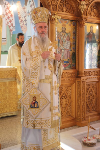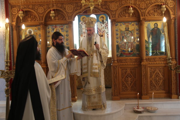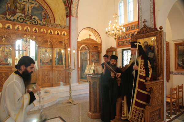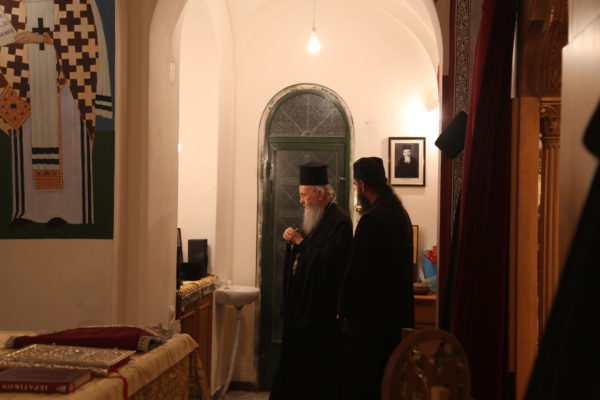 Ο Σεβασμιώτατος τέλεσε τον Εσπερινό μαζί με τον Εφημέριο του χωριού π. Ιωάννη Χαμηλό και τον Διάκονο π. Παΐσιο.