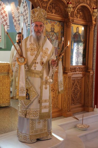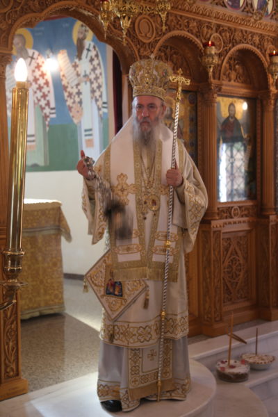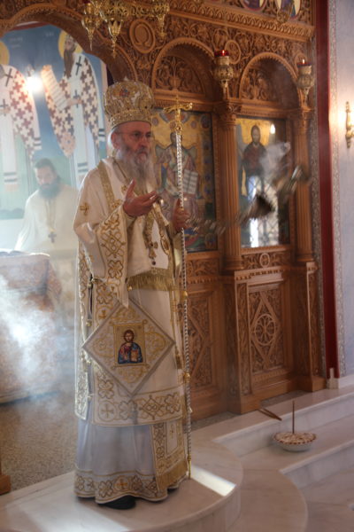 Στο κήρυγμά του ο Σεβασμιώτατος ανέλυσε τον ύμνο που ψάλλουμε σε κάθε θεία Λειτουργία: «Είδομεν το φως το αληθινόν». Είπε ότι κάνουμε λόγο για τον Χριστό, επειδή Αυτός είναι το αληθινό Φως του κόσμου, όπως το είπε ο Ίδιος και το δεχόμαστε, και επειδή οι άγιοι βλέπουν το Φως στην θεία Λειτουργία. Όμως, υπάρχει και το αισθητό –κτιστό φως του ηλίου, το φως της ζωής, αλλά και το φως της ανθρώπινης γνώσης, τα οποία, όταν απολυτοποιούνται και θεοποιούνται, είναι ψεύτικα. Σήμερα παντού κυριαρχεί και θεοποιείται το κτιστό φως. Το Παρίσι θεωρείται η πόλη του φωτός, της ψευδωνύμου γνώσης του διαφωτισμού και της αρνήσεως του αληθινού Φωτός. Προέτρεψε δε να γίνουμε υιοί του αληθινού Φωτός. Ο Χριστός το είπε: «έως το φως έχετε, πιστεύετε εις το φως, ίνα υιοί φωτός γένησθε» (Ιω. ιβ΄, 36).