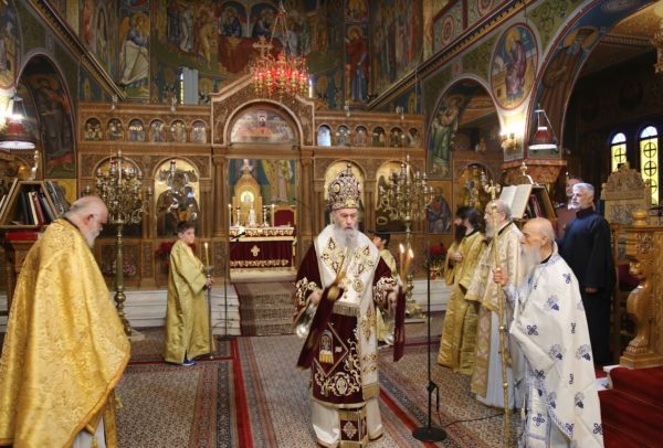 Με τον Σεβασμιώτατο συλλειτούργησαν ο πολιός Αρχιμανδρίτης Αντώνιος Βαζούρας, ο Ιεροκήρυκας της Μητρόπολης Αρχιμανδρίτης Ειρηναίος Κουτσογιάννης, ο Πρωτ. Θωμάς Βαμβίνης, εφημέριος του Μητροπολιτικού Ναού και Γενικός Αρχιερατικός Επίτροπος της Μητρόπολης και οι Διάκονοι Παΐσιος Παρασκευάς και Αντώνιος Αντωνιάδης. Στα αναλόγια έψαλαν οι Ιεροψάλτες του Ναού Παντελής Αναστασόπουλος και Δημήτριος Καλογερής.