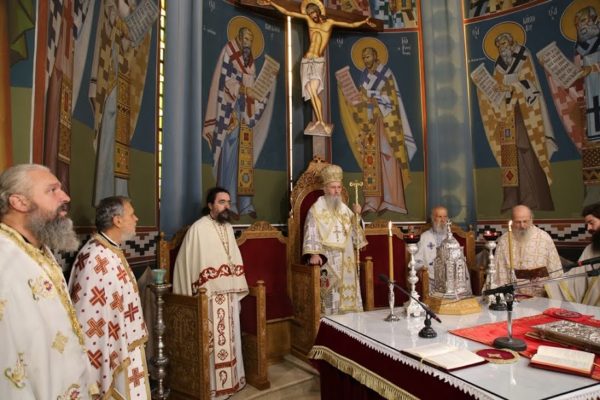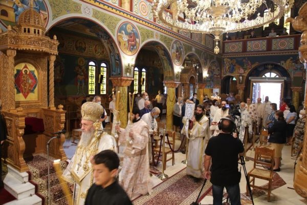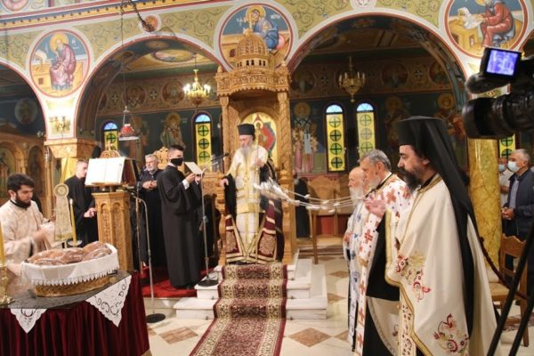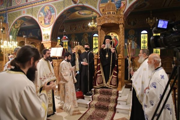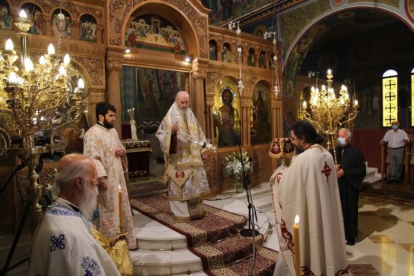 Την κυριώνυμο ημέρα τελέσθηκε επίσης λιτά Αρχιερατική Θεία Λειτουργία από τον Σεβασμιώτατο κ. Ιερόθεο, πλαισιωμένο με τον ελάχιστο αριθμό Ιερέων και Διακόνων.