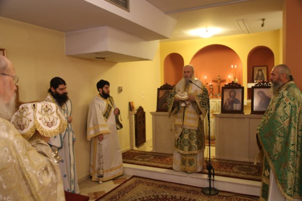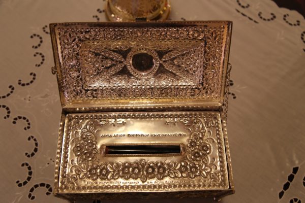 Οι πιστοί είχαν την ευλογία να προσκυνήσουν το ιερό Λείψανο του αγίου Πορφυρίου, φιαλίδιο με αίμα του, που προσκόμισε στο Παρεκκλήσιο για την εορτή ο Σεβασμιώτατος.