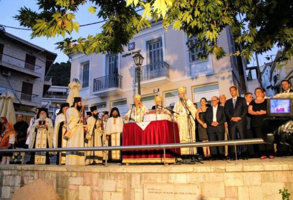 Παρούσες οἱ Ἀρχές τοῦ τόπου, ὁ Δήμαρχος Ναυπακτίας κ. Παναγιώτης Λουκόπουλος, ὁ ἐκλεγμένος Δήμαρχος κ. Βασίλειος Γκίζας, ἡ Πρόεδρος τοῦ Δημοτικοῦ Συμβουλίου κ. Ἀγγελική Σμπούκη, ὁ Ἀντιδήμαρχος κ. Γεώργιος Σιαμαντᾶς, ὁ Πολιτευτής κ. Ἀθανάσιος Παπαθανάσης, ἡ Περιφερειακή Σύμβουλος Ἀν. Κωνσταντοπούλου, ὁ Διοικητής τῆς Πυροσβεστικῆς Ναυπάκτου κ. Κων. Μπέκος, ὁ Πρόεδρος τοῦ Δικηγορικοῦ Συλλόγου Μεσολογγίου κ. Χρῆστος Παΐσιος, ἐκπρόσωποι φορέων καί ὀργανισμῶν καί πλῆθος κόσμου πού γεμίζει τόν Ναό καί τήν πλατεία τῆς πόλης γιά νά λάβει τήν εὐλογία τῆς Ἁγίας.