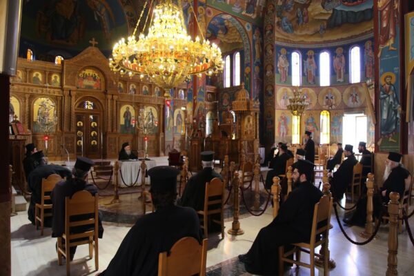 Έπειτα ο Σεβασμιώτατος παρουσίασε την νέα Εγκύκλιο της Ιεράς Συνόδου με θέμα «Αποφάσεις της Διαρκούς Ιεράς Συνόδου της 12.5.2020 ως προς την λειτουργίαν των Ιερών Ναών κατά το χρονικόν διάστημα από 17ης Μαίου έως 5ης Ιουνίου ε.ε.», ενημερώνοντας και συμβουλεύοντας τους Κληρικούς και τους λαϊκούς (Επιτρόπους-Νεωκόρους) για την εφαρμογή των νέων μέτρων κατά την νεά αυτή περίοδο αποκλιμάκωσης των μέτρων κατά της πανδημίας.