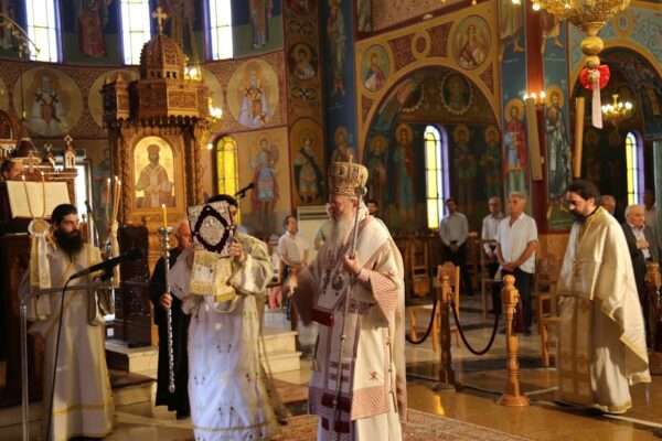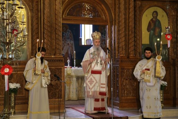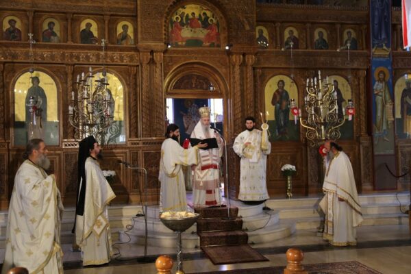 Ο Σεβασμιώτατος κ. Ιερόθεος στο τέλος της θείας Λειτουργίας απηύθυνε κατάλληλο λόγο προς τους πιστούς, ευχαριστώντας το ποίμνιο της Ιεράς Μητροπόλεως για την εκκλησιαστική του στάση κατά την δύσκολη αυτή περίοδο. Συνεχάρη τους αρμόδιους της Πολιτείας και την Επιστημονική ομάδα που κατάφεραν ώστε η Πατρίδα μας να μη θρηνήση πολλά θύματα. Κάνοντας δε έναν σύντομο απολογισμό, απαρίθμησε τα θετικά στοιχεία που μπορούμε να πάρουμε από την περιπέτεια αυτή.