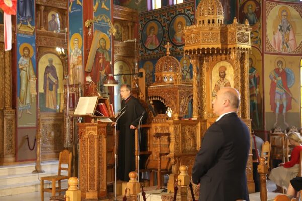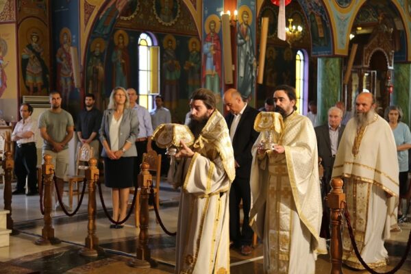 Χαιρετισμό στο εκκλησίασμα απηύθυνε και ο Δήμαρχος Ναυπακτίας κ. Βασίλειος Γκίζας, που είναι και ενορίτης της Αγίας Παρασκευής και δήλωσε ότι “Ο κορωνοϊός σε επίπεδο πολιτών μπορεί να ονομασθεί ο ιός της ευθύνης”.