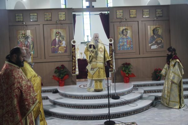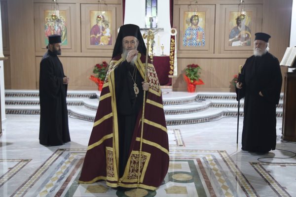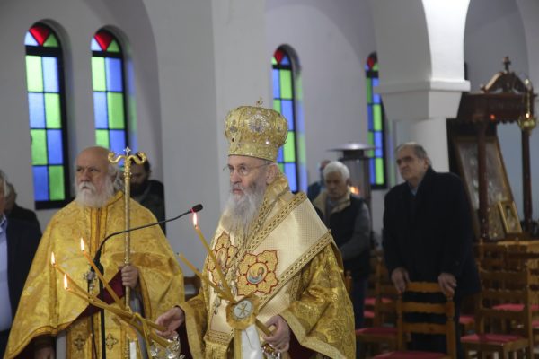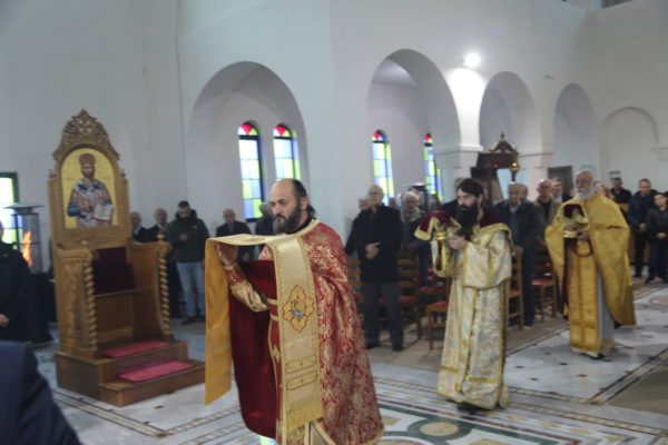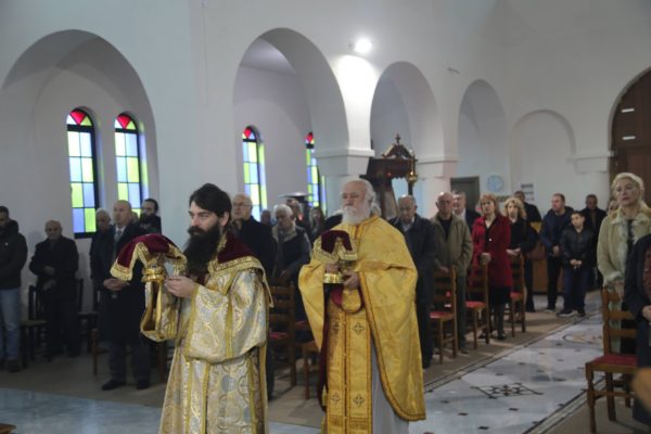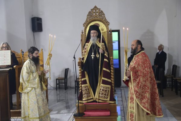 Με τον Σεβασμιώτατο συλλειτούργησαν οι Ιερείς: Αρχιμ. π. Ειρηναίος Κουτσογιάννης, ιεροκήρυξ, ο Εφημέριος του Ναού π. Ιωάννης Ντζουμάνης και ο Διάκονος π. Παΐσιος Παρασκευάς.