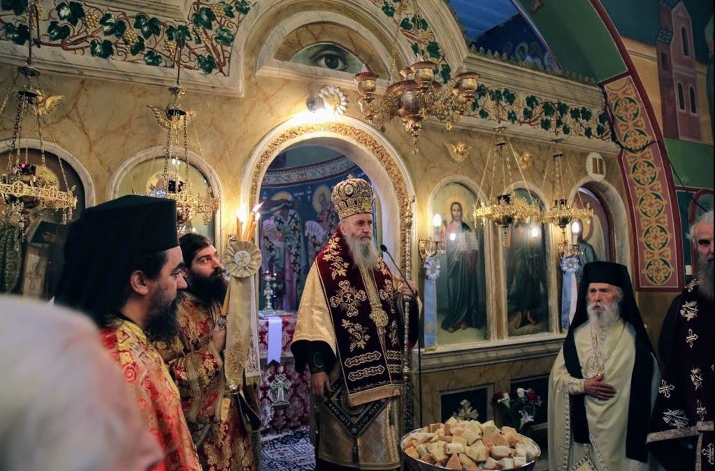 Μετά τήν θεία Λειτουργία προσφέρθηκε κέρασμα στούς ἐκκλησιασθέντες καί ὁ Σεβασμιώτατος συζήτησε διάφορα θέματα μέ τόν Δήμαρχο Ἀγρινίου καί μέ τίς Ἀρχές.