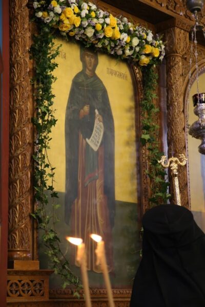 Στον Εσπερινό της Αγίας Παρασκευής χοροστάτησε ο Σεβασμιώτατος κ. Ιερόθεος, ο οποίος στο κήρυγμά του αναφέρθηκε στην προσωπική αθανασία που απολαμβάνει η Αγία Παρασκευή χάρη στην ένωσή της με την αιώνια ζωή, τον Χριστό, μια αθανασία ευεργετική και γεμάτη ευλάβεια από τον λαό. «Ο άνθρωπος πάντα αναζητά την αθανασία», είπε ο Σεβασμιώτατος, «η οποία, σύμφωνα με τον άγιο Σωφρόνιο του Έσσεξ είναι τεσσάρων ειδών: η υλιστική (για όσους πιστεύουν στην παντοτινή ύπαρξη της ύλης), η ιστορική (κατά την οποία ο άνθρωπος επιδιώκει να μείνη το όνομά του στην ιστορία), η πανθεϊστική και φιλοσοφική (κατά την οποία ο άνθρωπος επιστρέφει στην αρχή από την οποία ξεκίνησε) και η προσωπική, την οποία διδάσκει και παρουσιάζει το Ευαγγέλιο του Χριστού, ο οποίος είναι η αιώνια ζωή. Οι άγιοι του Θεού αυτή την προσωπική αθανασία αναζητούν με την ένωσή τους με τον Χριστό.