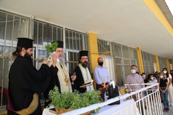 Στον αγιασμό 1ου Λυκείου και 1ου Γυμνασίου ο Σεβασμιώτατος είπε ότι αρχίζει η νέα σχολική χρονιά με δυσκολίες. Αυτή, όμως, είναι η προσφορά της παιδείας, να υπερβαίνει όλες τις δυσκολίες. Τα δύσκολα είναι για τους δυνατούς και τους σοφούς.