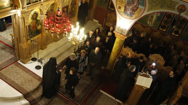 Στο τέλος οι πιστοί που γέμισαν τον Ιερό Ναό του Αγίου Δημητρίου, έδωσαν τον ασπασμό της συγγνώμης, ενώ ο χορός υπό τον κ. Παντελή Αναστασόπουλο έψαλαν τα κατανυκτικά τροπάρια.