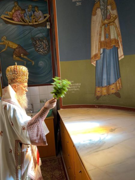 Είπε, μάλιστα, ότι οι δύο άγιες Τράπεζες που βρίσκονται στις δύο κόγχες, βόρεια και νότια, του μεγαλοπρεπούς Ιερού Ναού της Αγίας Παρασκευής, ήταν ανεγκαινίαστες, ωσάν να περίμεναν την καθιέρωσή τους. «Και το αυτό πραγματοποιείται εφέτος, με τον εγκαινιασμό της πρώτης εις τιμήν του αγίου Καλλινίκου και με τον εγκαινιασμό της δεύτερης τον επόμενο μήνα προς τιμήν του άλλου νεοφανούς αγίου Σωφρονίου του αγιορείτου».