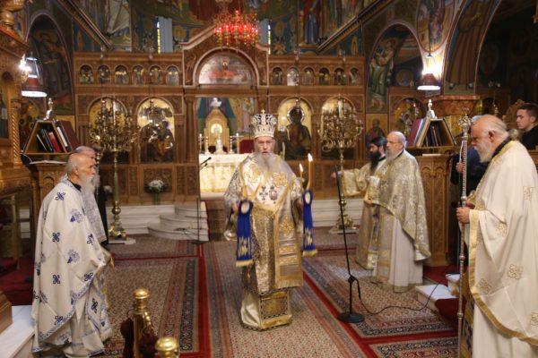 Με τον Σεβασμιώτατο συλλειτούργησαν οι ιερείς αρχιμ. π. Ειρηναίος Κουτσογιάννης, ιεροκήρυξ, αρχιμ. π. Αντώνιος Βαζούρας, π. Θωμάς Βαμβίνης, προιστάμενος του Μητροπολιτικού Ναού, π. Νικόλαος Δημόπουλος και οι διάκονοι π. Παΐσιος Παρασκευάς και π. Αντώνιος Αντωνιάδης.