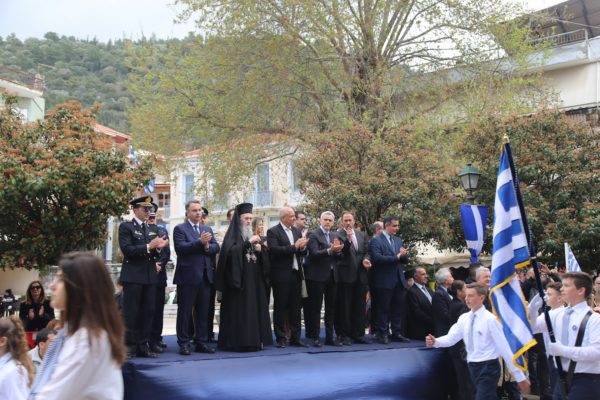 Μετά την Δοξολογία ο Σεβασμιώτατος με τις Αρχές κατευθύνθηκαν πεζοί στην Πλατεία Φαρμάκη, όπου στο Ηρώον της Ναυπάκτου τελέσθηκε επιμνημόσυνη δέηση. Μετά το πέρας της δεήσεως έγινε κατάθεση στεφάνων από τις Αρχές, τα Σχολεία και Συλλόγους της πόλεως, εκφωνήθηκε ο πανηγυρικός της ημέρας από την φιλόλογο κ. Ανδριάνα Μαντζαβά και ακολούθησε παρέλαση των Σχολείων και διαφόρων Συλλόγων.
