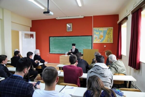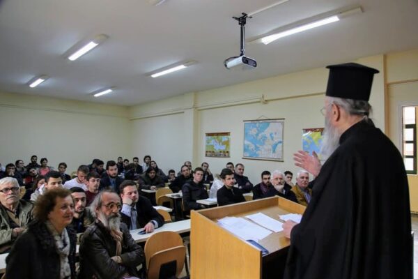 Ο Μητροπολίτης Ναυπάκτου καί Ἁγίου Βλασίου κ. Ἱερόθεος ἐπισκέφθηκε τήν Ἀνώτατη Ἐκκλησιαστική Ἀκαδημία Βελλᾶς Ἰωαννίνων, προσκεκλημένος τῆς Προέδρου τῆς Σχολῆς καθηγήτριας κ. Μαρίας Ράπτη προκειμένου νά μιλήση στούς φοιτητές τῆς Σχολῆς, στό πλαίσιο τῶν μαθημάτων τους, κατά τήν Πέμπτη 11 Ἀπριλίου 2019