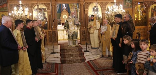 Προ της απολύσεως τελέσθηκε η καθιερωμένη Λιτανεία των Ιερών Εικόνων εντός του Ιερού Ναού, όπου αναγνώσθηκαν τα αποσπάσματα από το «Συνοδικό της Ορθοδοξίας». Την Λιτανεία συνόδευσε αντιπροσωπεία παιδιών από τα Κατηχητικά του Ιερού Ναού.