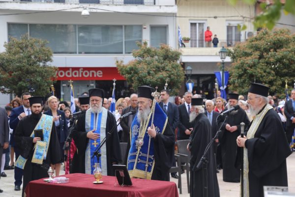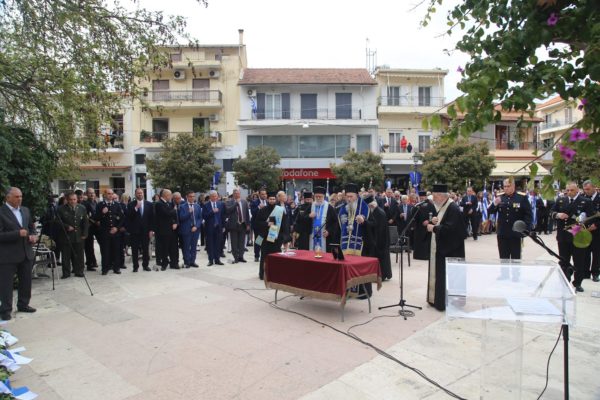 Μετά την Δοξολογία ο Σεβασμιώτατος μαζί με τις Αρχές κατευθύνθηκαν πεζή στην Πλατεία Φαρμάκη, όπου στο Ηρώον της Ναυπάκτου τελέσθηκε επιμνημόσυνη δέηση. Μετά το πέρας της δεήσεως έγινε κατάθεση στεφάνων από τις Αρχές, τα Σχολεία και Συλλόγους της πόλεως, εκφωνήθηκε ο πανηγυρικός της ημέρας από την εκπαιδευτικό κα. Γιώτη Παρασκευή και ακολούθησε Παρέλαση των Σχολείων και διαφόρων Συλλόγων.