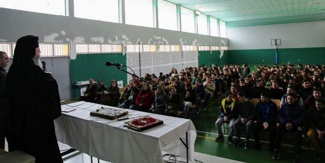 Ὁ Σεβασμιώτατος, πού προσκλήθηκε ἀπό τόν Διευθυντή κ. Ἀντώνιο Μπέκο καί τούς Καθηγητές γιά νά εὐλογήση τήν πίτα, μίλησε στούς μαθητές γιά τό τί σημαίνουν οἱ ἔννοιες γυμνάσιο, λύκειο καί ἀκαδημία, ἀπό τήν ἀρχαιότητα καί τούς φιλοσόφους, λέγοντας ὅτι σκοπός τους εἶναι νά ὁδηγοῦν τούς μαθητές στήν γνώση, στήν ἀλήθεια, στήν εἰλικρίνεια, στό φῶς, στήν ἀγάπη καί τόν ἔρωτα γιά τήν μάθηση καί τήν ζωή, καί ὄχι στό σκοτάδι τῶν κρυφῶν νοοτροπιῶν καί τῆς ὑποκρισίας.