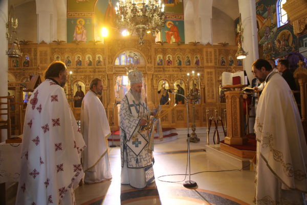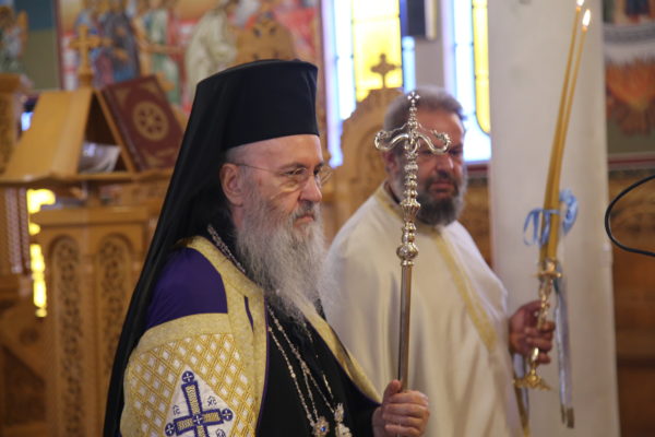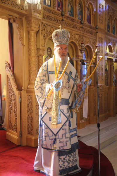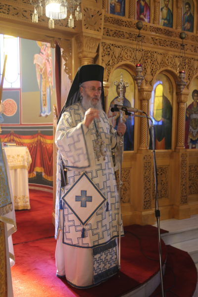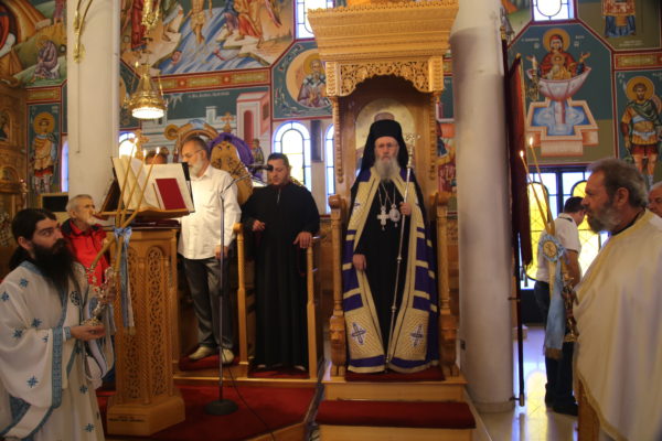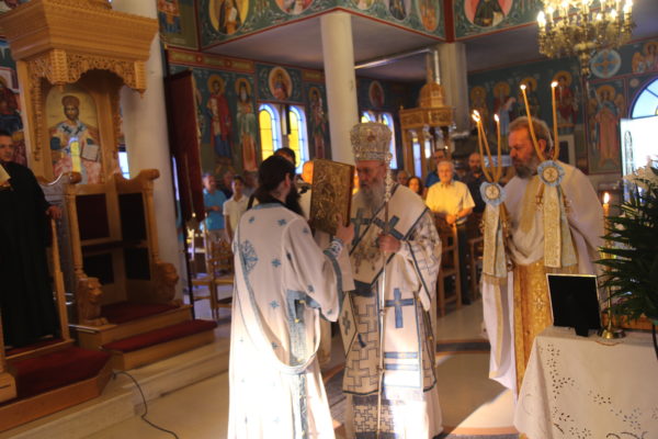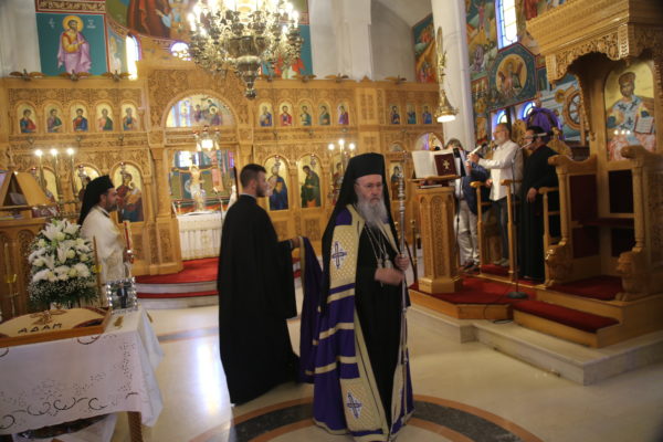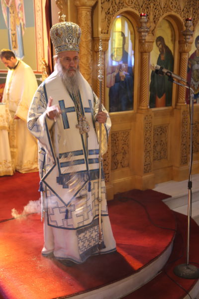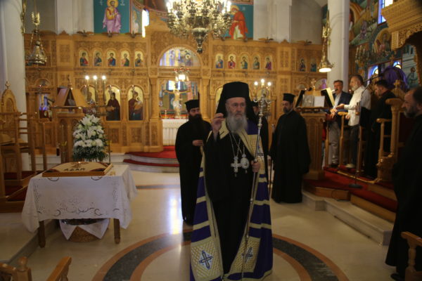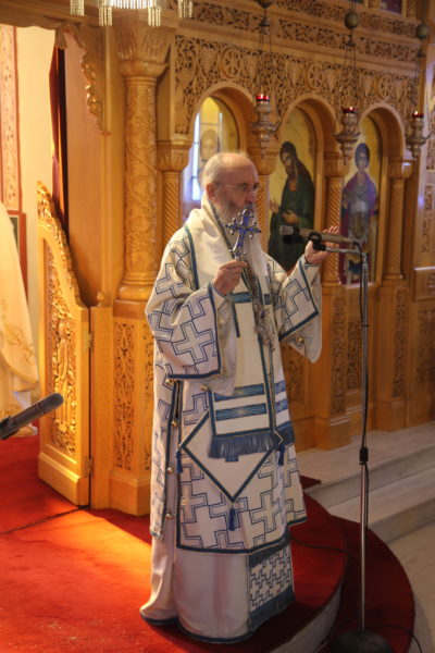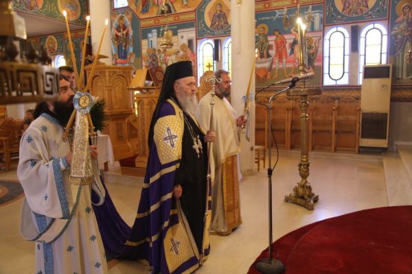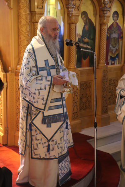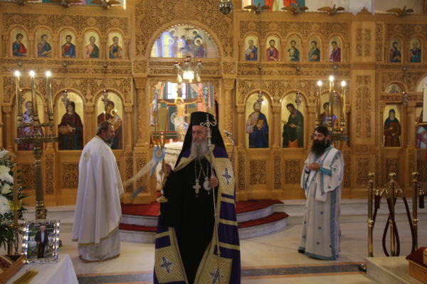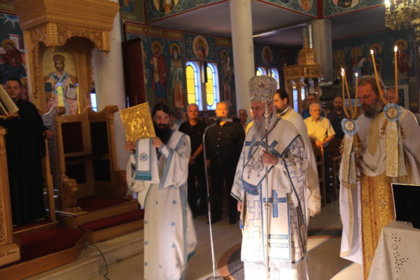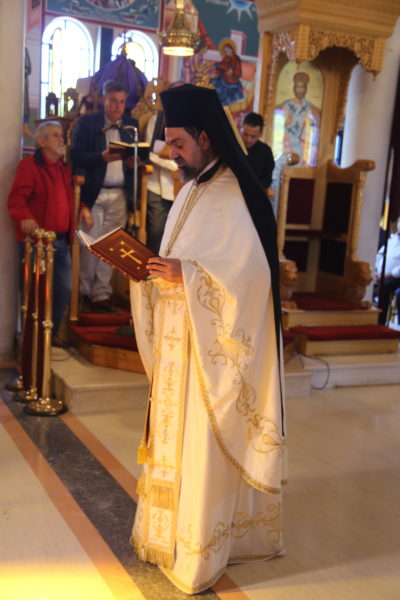 Τον Σεβασμιώτατο πλαισίωσαν ο Αρχιμ. π. Πολύκαρπος Θεοφάνης, ο π. Νικόλαος Κυρίτσης, συνταξιούχος Ιερέας από την Αμερική, ο εφημέριος του Ιερού Ναού π. Κωνσταντίνος Κυρίτσης και ο Διάκονος π. Παίσιος Παρασκευάς.