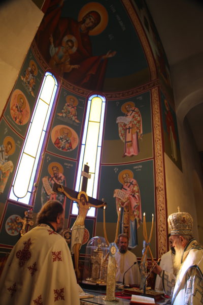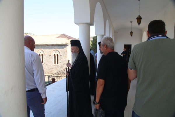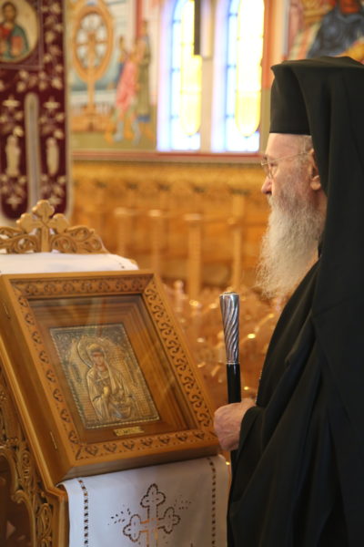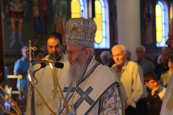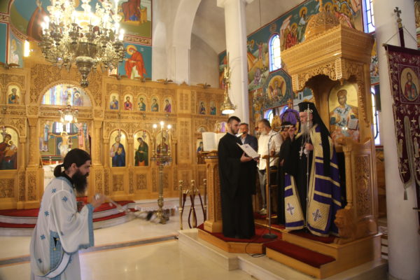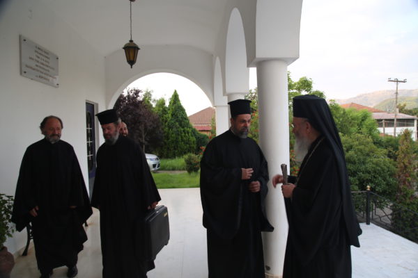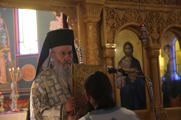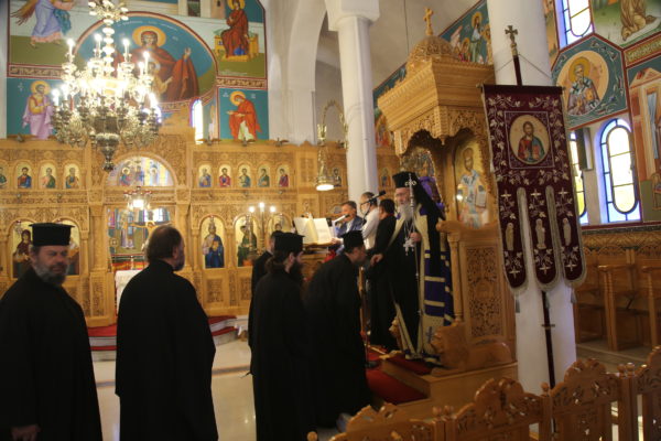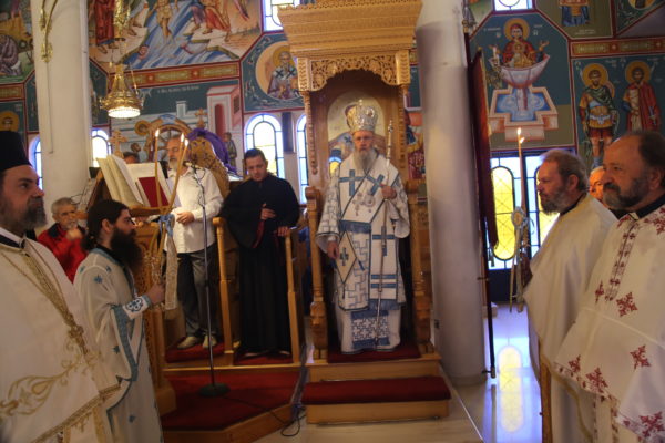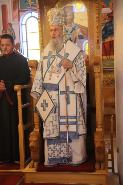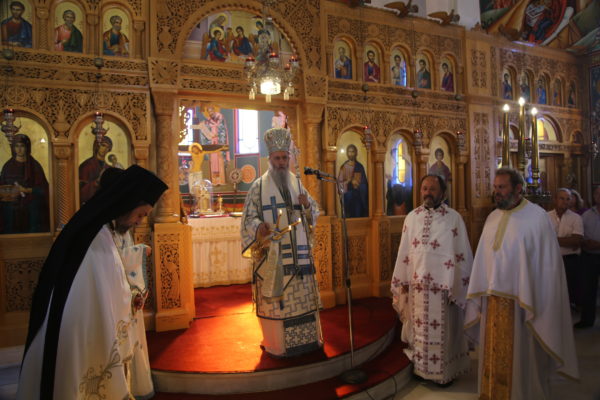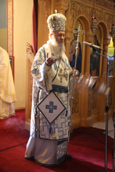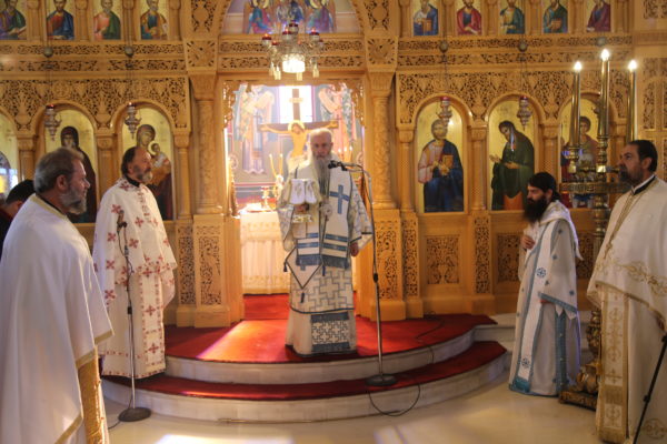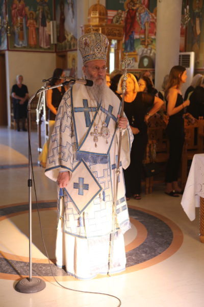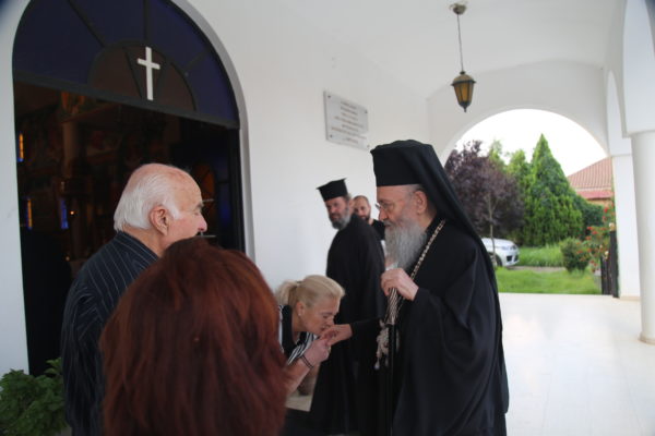 Τον Σεβασμιώτατο πλαισίωσαν ο Αρχιμ. π. Πολύκαρπος Θεοφάνης, ο π. Νικόλαος Κυρίτσης, συνταξιούχος Ιερέας από την Αμερική, ο εφημέριος του Ιερού Ναού π. Κωνσταντίνος Κυρίτσης και ο Διάκονος π. Παίσιος Παρασκευάς.