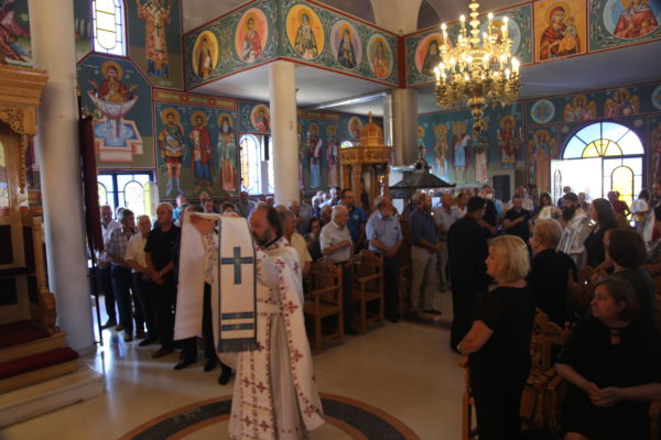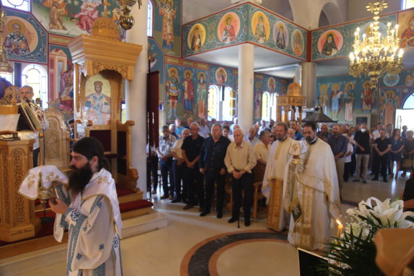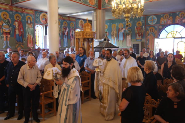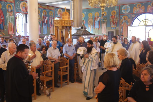 Μετά την οπισθάμβωνο ευχή αναπέμφθηκε δέηση υπέρ καταπαύσεως των πυρκαιών, σύμφωνα με την εντολή της Ιεράς Συνόδου και στην συνέχεια τελέσθηκε το μνημόσυνο του παλαιού ψάλτη της Ενορίας, Αδάμ Δημόπουλου.