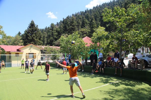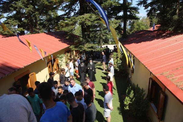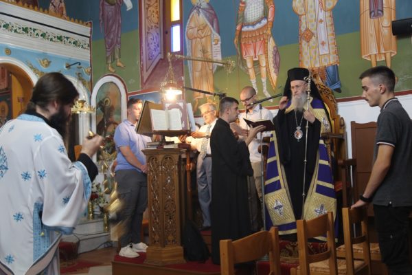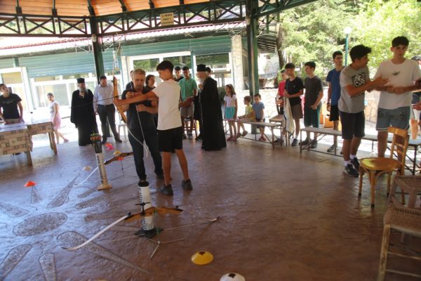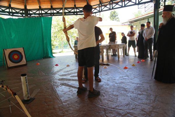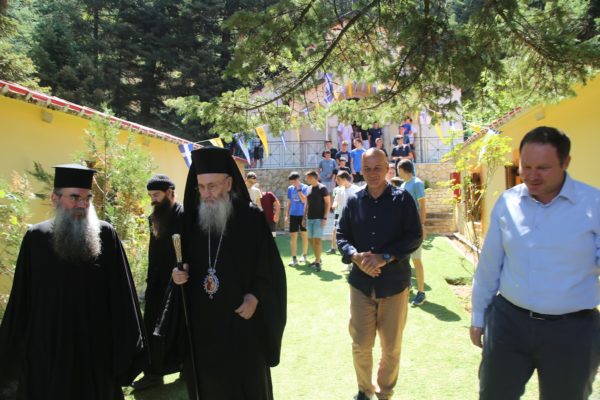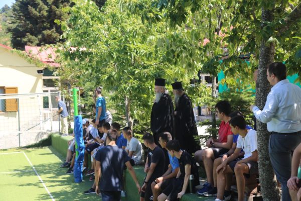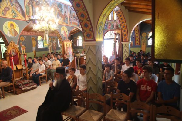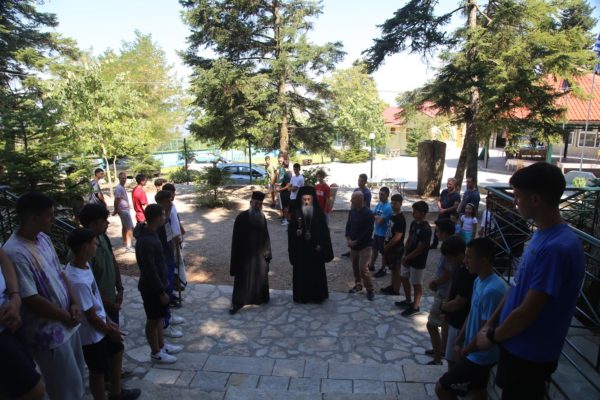 Μετά την θεία Λειτουργία ο Σεβασμιώτατος επισκέφθηκε την Κατασκήνωση της Χριστιανικής Ενώσεως Αγρινίου, κατόπιν προσκλήσεως του υπεύθυνου Ιερέως, Αρχιμ. π. Λαυρεντίου Καρανάσιου. Εκεί οι κατασκηνωτές τον υποδέχθηκαν ψάλλοντας το Άξιόν Εστιν. Μίλησε στα παιδιά για την Υπεραγία Θεοτόκο και στην συνέχεια συζήτησε με τον αρχηγό και τα στελέχη της Κατασκήνωσης, της οποίας υπήρξε και ο ίδιος κατασκηνωτής και υπαρχηγός στα νεανικά του χρόνια.