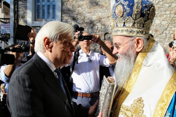 Στό τέλος τῆς δοξολογίας ὁ Σεβασμιώτατος κ. Ἱερόθεος ἀπηύθυνε προσφώνηση πρός τόν Πρόεδρο τῆς Δημοκρατίας, ἀναφέρομενος στήν ἱστορία τῆς Ἱερᾶς Μητροπόλεως Ναυπάκτου, στόν εὐσεβῆ λαό της καί τά χαρακτηριστικά τοῦ λαοῦ. Καλωσόρισε τόν Πρόεδρο τῆς Δημοκρατίας στήν Ναύπακτο καί ἀναφέρθηκε στά χαρίσματά του, ὅπως αὐτά ἀναδείχθηκαν καί κατά τήν διάρκεια τῆς θητείας του. Τέλος τοῦ προσέφερε ὡς ἀναμνηστικό συμβολικό δῶρο ἕναν ζωγραφικό πίνακα Ναυπακτίου καλλιτέχνη μέ τήν Ναύπακτο καί τόν Καθεδρικό Ναό τοῦ Ἁγίου Δημητρίου.