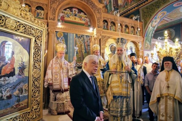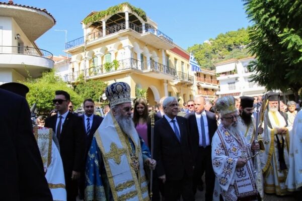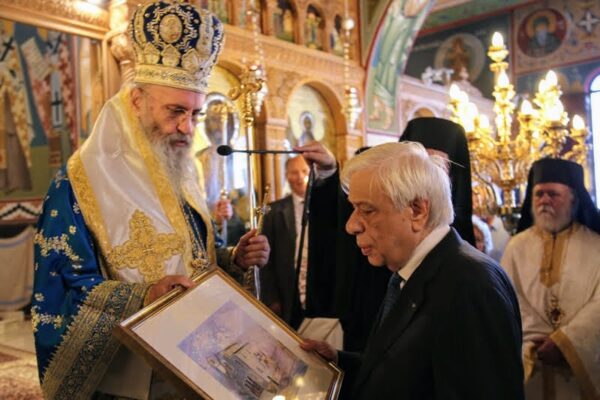 Στό τέλος τῆς θείας Λειτουργίας πραγματοποιήθηκε δοξολογία μέ τήν παρουσία τοῦ Προέδρου τῆς Δημοκρατίας κ. Προκόπη Παυλόπουλου, τόν ὁποῖον ὑποδέχθηκε στήν πύλη τοῦ Ἱεροῦ Ναοῦ ὁ Σεβασμιώτατος κ. Ἱερόθεος.