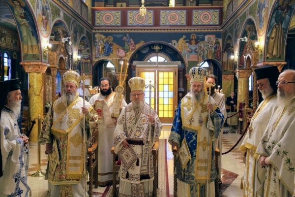 Στόν Μητροπολιτικό Ναό τῆς Ναυπάκτου συγκεντρώθηκε ὅλη ἡ πόλη τῆς Ναυπάκτου, ὁ ἱερός Κλῆρος, οἱ Ἀρχές τοῦ τόπου, μέ ἐπικεφαλῆς τόν Δήμαρχο Ναυπάκτου κ. Βασίλειο Γκίζα, ἡ Ἀντιπεριφερειάρχης κ. Μαρία Σαλμᾶ, οἱ Βουλευτές Αἰτωλακαρνανίας κ.κ. Σπήλιος Λιβανός, Γιῶργος Βαρεμένος, Θάνος Μωραΐτης καί Δημήτριος Κωνσταντόπουλος, ἐκπρόσωποι τοῦ ἐκπαιδευτικοῦ κόσμου, μαθητές, πολιτιστικοί καί χορευτικοί σύλλογοι μέ τά μέλη τους ἐνδεδυμένα μέ παραδοσιακές φορεσιές, ἡ Παπαχαραλάμπειος Δημοτική Φιλαρμονική καί πλῆθος κόσμου, σέ μιά πανηγυρική ἀτμόσφαιρα. Ἔψαλε χορός ἱεροψαλτῶν ὑπό τόν πρωτοψάλτη κ. Παντελῆ Ἀναστασόπουλο.