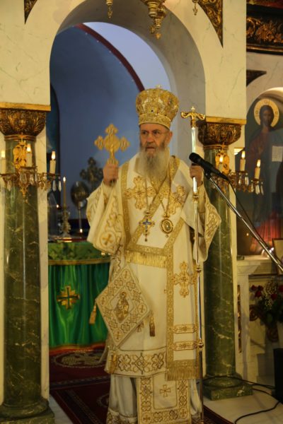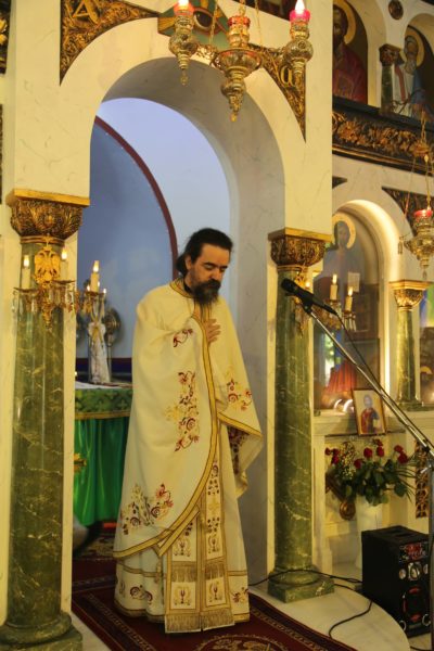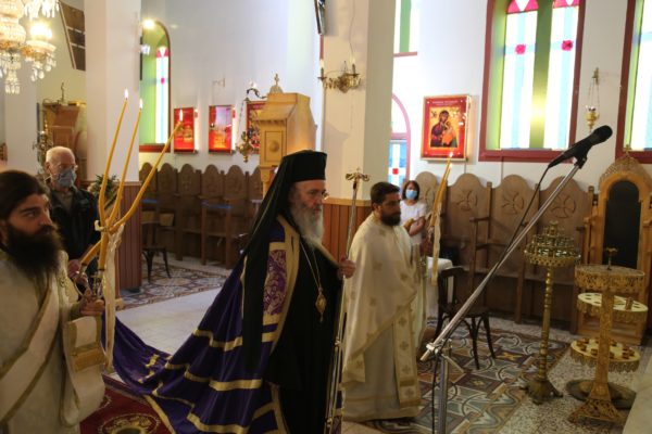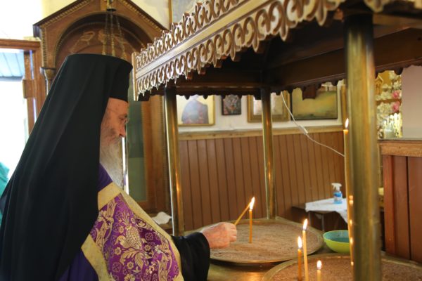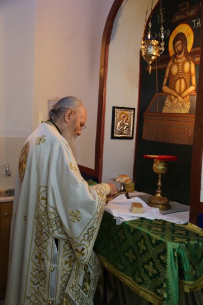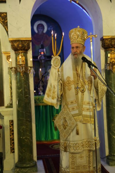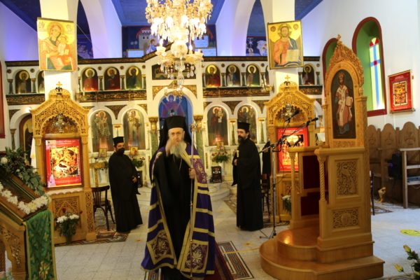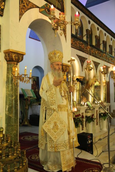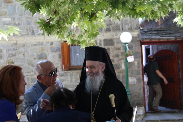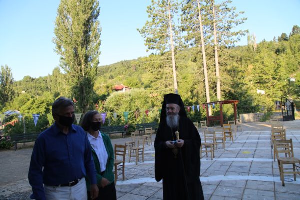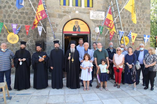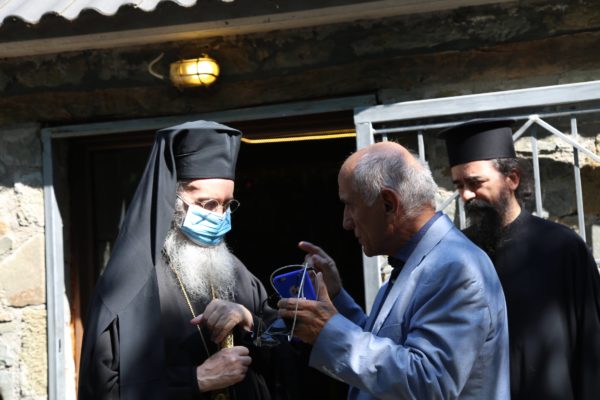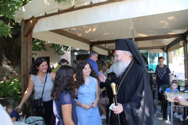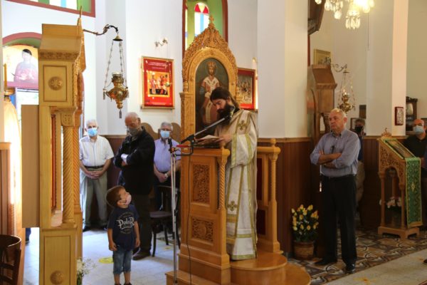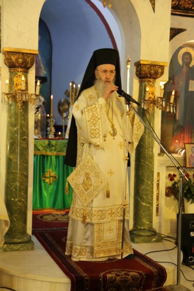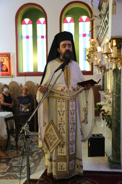 Στο τέλος της θείας Λειτουργίας ο Σεβασμιώτατος μνημόνευσε τον αείμνηστο π. Αθανάσιο Δρόσο που κράτησε την Εκκλησία ανοικτή για πολλά χρόνια και άφησε μνήμη αγαθού λευίτη και ευχαρίστησε τον νυν Εφημέριο π. Ιωάννη Χαμηλό, και στο πρόσωπό του όλους τους Ιερείς της Μητροπόλεως και ιδιαιτέρως της Ορεινής Ναυπακτίας. Ευχαρίστησε επίσης τους Εκκλησιαστικούς Συμβούλους, και όσους υπηρετούν σήμερα και της προηγούμενης θητείας, για την μεγάλη αγάπη και φροντίδα στην Ενορία τους, και ευχαρίστησε όλους τους κατοίκους του χωριού για την ευσέβειά τους και τους ευχήθηκε με την ευχή του αγίου Καλλινίκου Εδέσσης: «να έχετε του Αβραάμ, του Ισαάκ και του Ιακώβ τα αγαθά».