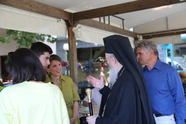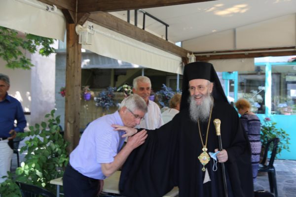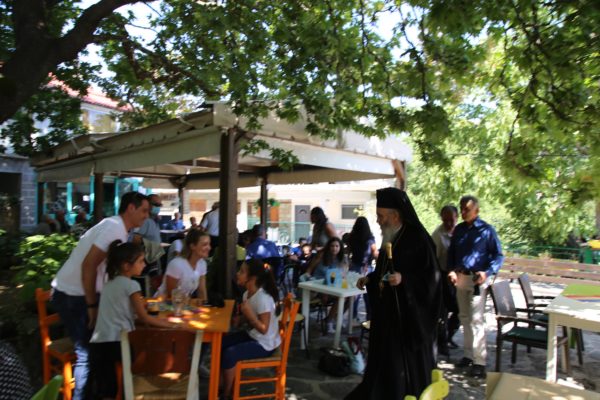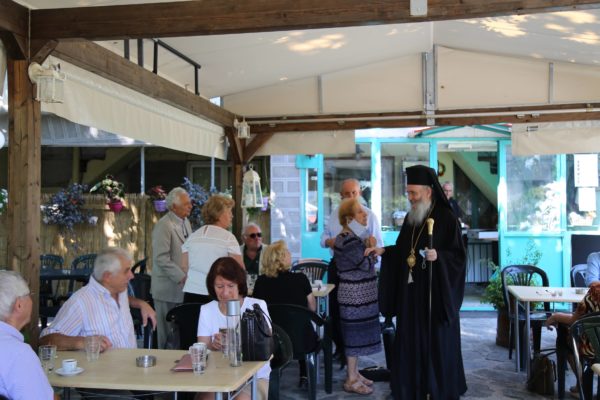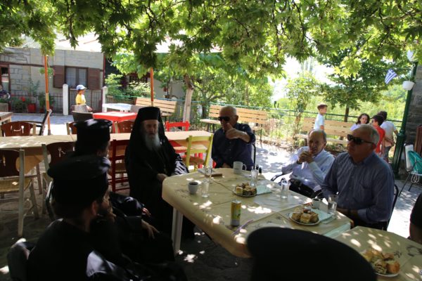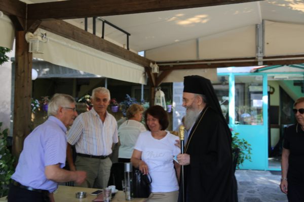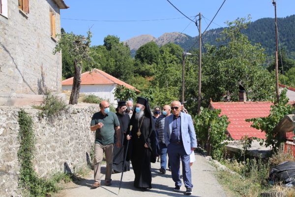 Μετά την Θεία Λειτουργία ξεναγήθηκε από τον κ. Δημήτριο Βλάχο στο μουσείο-ναύδριο της Ενορίας, στην συνέχεια πήγε στην πλατεία του χωριού, όπου χαιρέτησε όλους τους κατοίκους και αναχώρησε για την Ναύπακτο, μια διαδρομή δυόμιση ωρών μέσα από τα θαυμάσια τοπία της ορεινής Φωκίδος και της Ορεινής Ναυπακτίας.