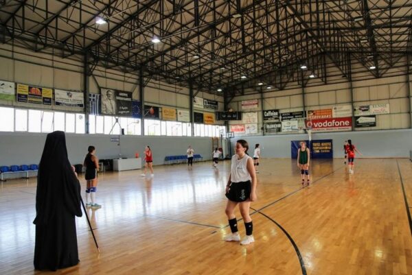 Επίσης ο Σεβασμιώτατος με τήν ευκαιρία της επίσκεψης του στο Εθνικό Παπαχαραλάμπειο Στάδιο Ναυπάκτου είχε συνάντηση και ευλόγησε την ομάδα βόλεϋ κορασίδων της πόλης.