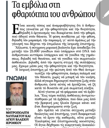 Ναυπάκτου Ιερόθεος: Τα εμβόλια στην φθαρτότητα του ανθρώπου
