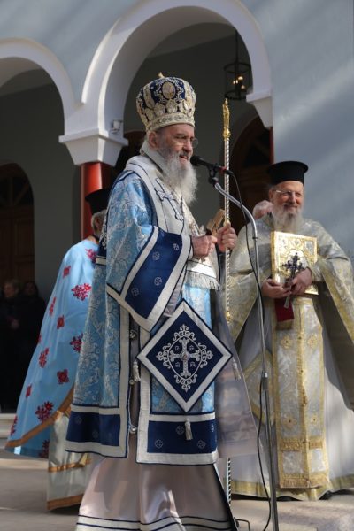 Ο Μητροπολίτης Ναυπάκτου και Αγίου Βλασίου κ. Ιερόθεος χοροστάτησε στον πανηγυρικό Όρθρο και τέλεσε την Θεία Λειτουργία και τον Μεγάλο Αγιασμό στον Ιερό Μητροπολιτικό Ναό του Αγίου Δημητρίου Ναυπάκτου. Μαζί του συλλειτούργησαν οι Ιερείς π. Θωμάς Βαμβίνης, Γενικός Αρχιερατικός Επίτροπος και ο π. Φώτιος Κυρίτσης και οι Διάκονοι π. Παΐσιος Παρασκευάς και π. Αντώνιος Αντωνιάδης.